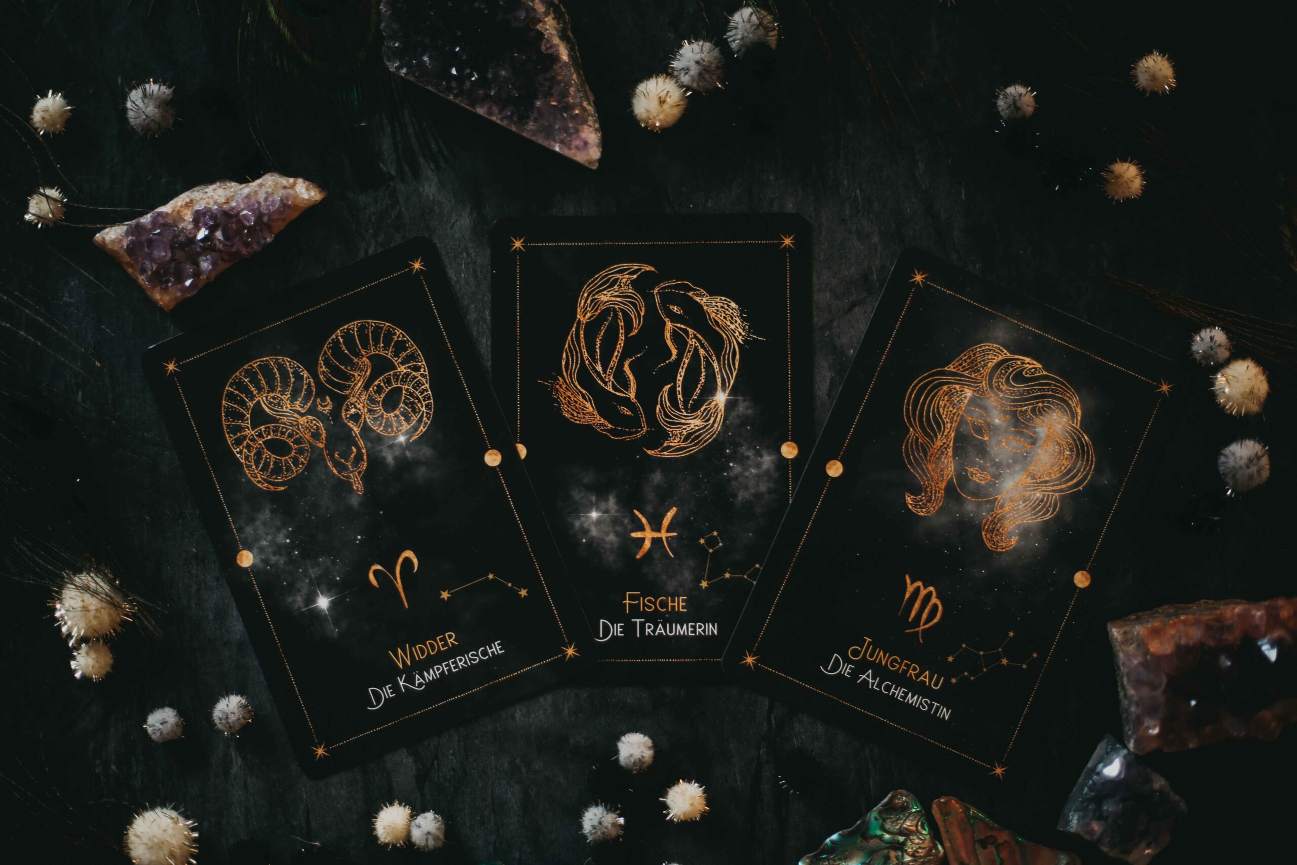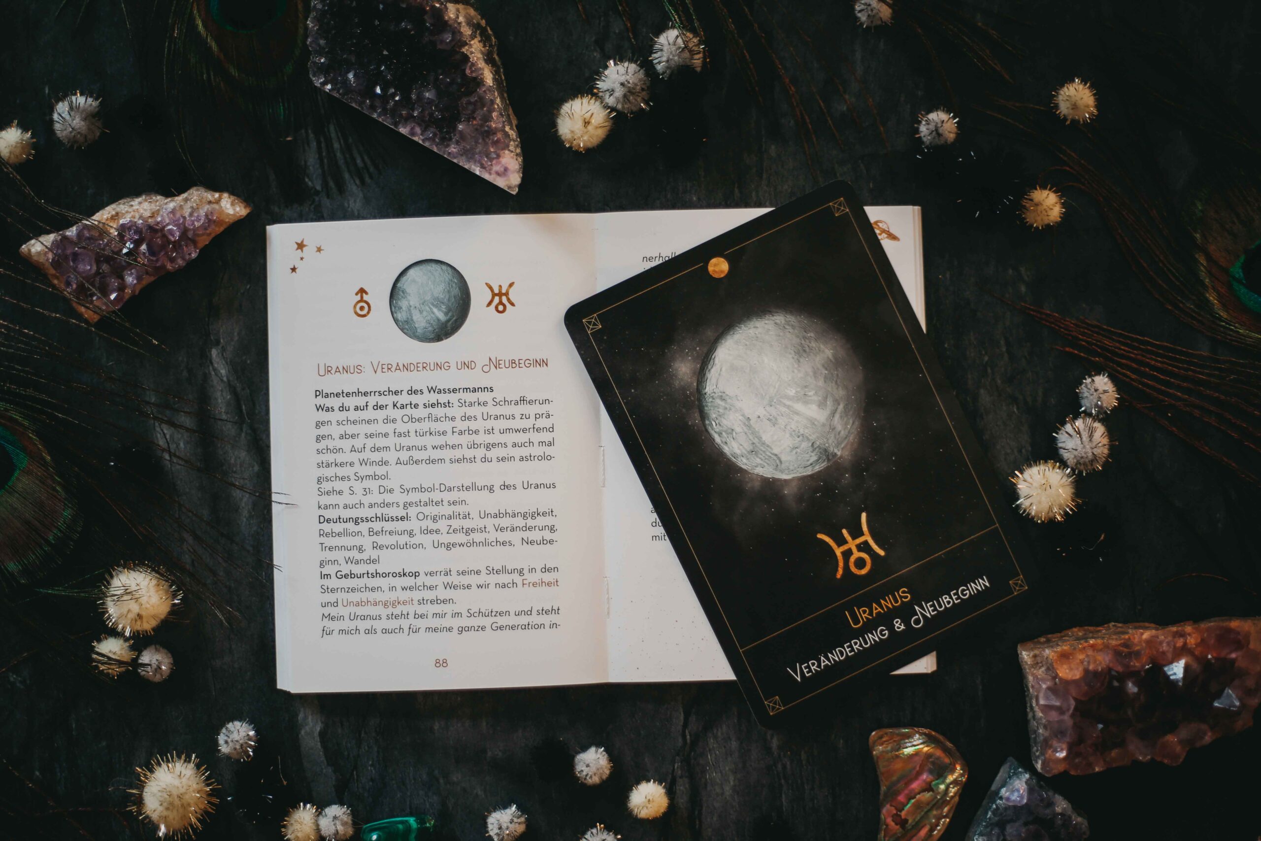 Die Astro-Cards begleiten dich außerdem durch das astrologische Jahr; nutze sie für Legungen zu Mondphasen, Sternzeichen, Planeten-Konstellationen usw. oder zu konkreten Lebensfragen.